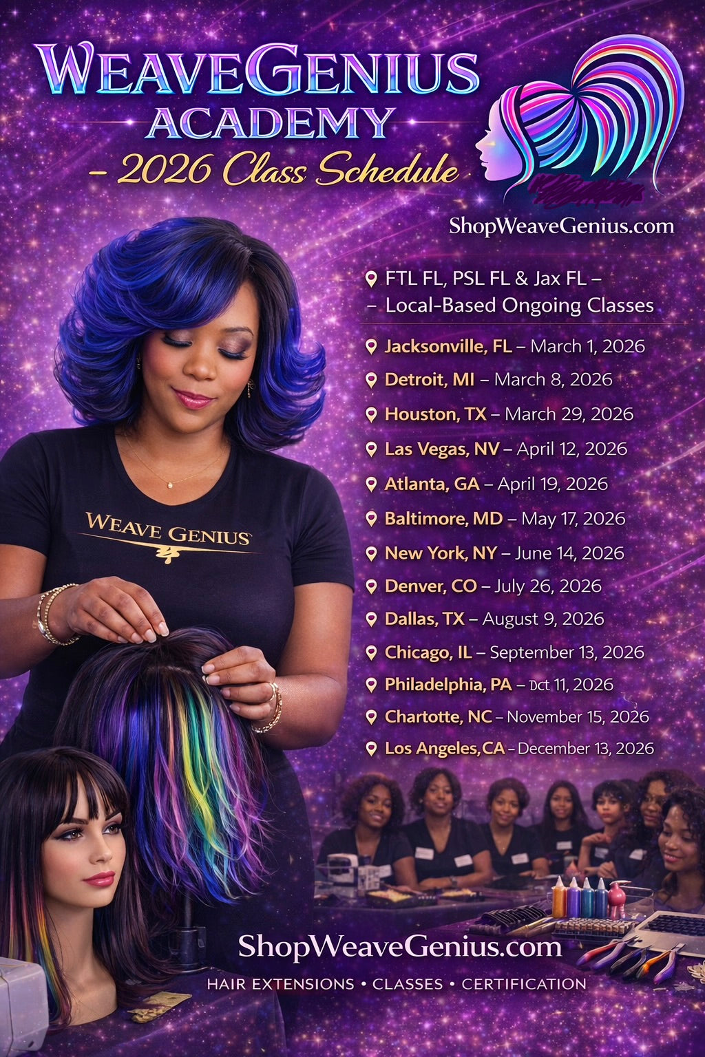 Weave Genius Academy National Tour Hair Extension & Wig Classes